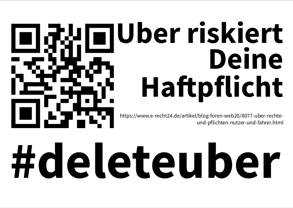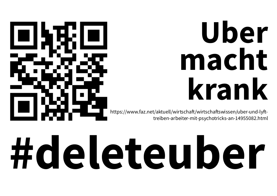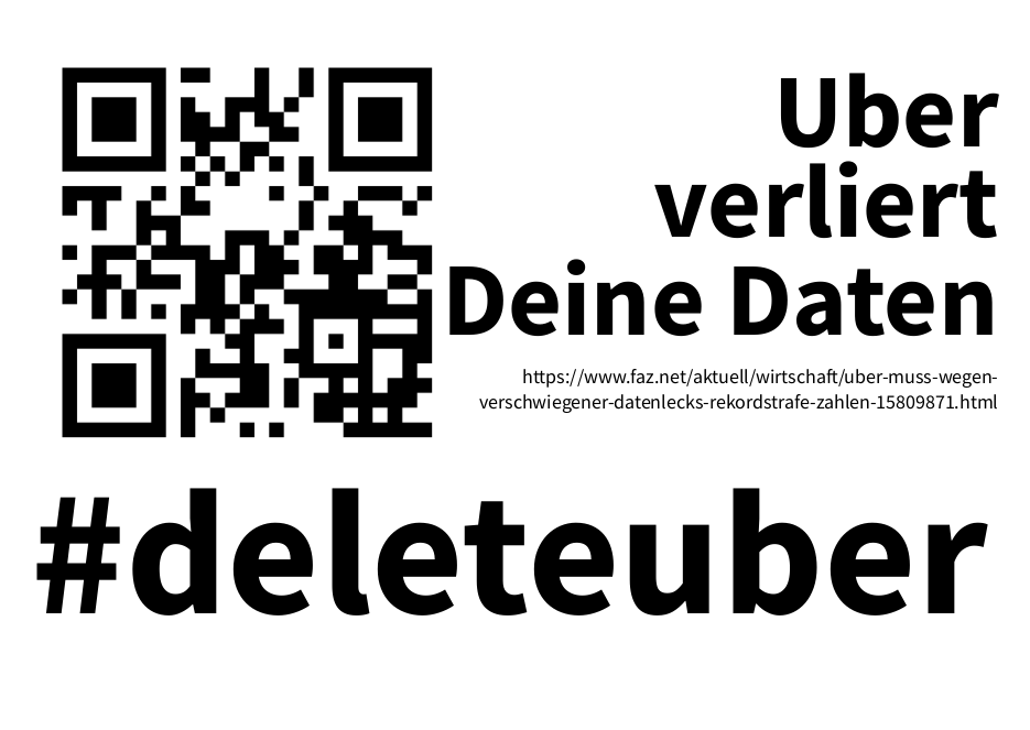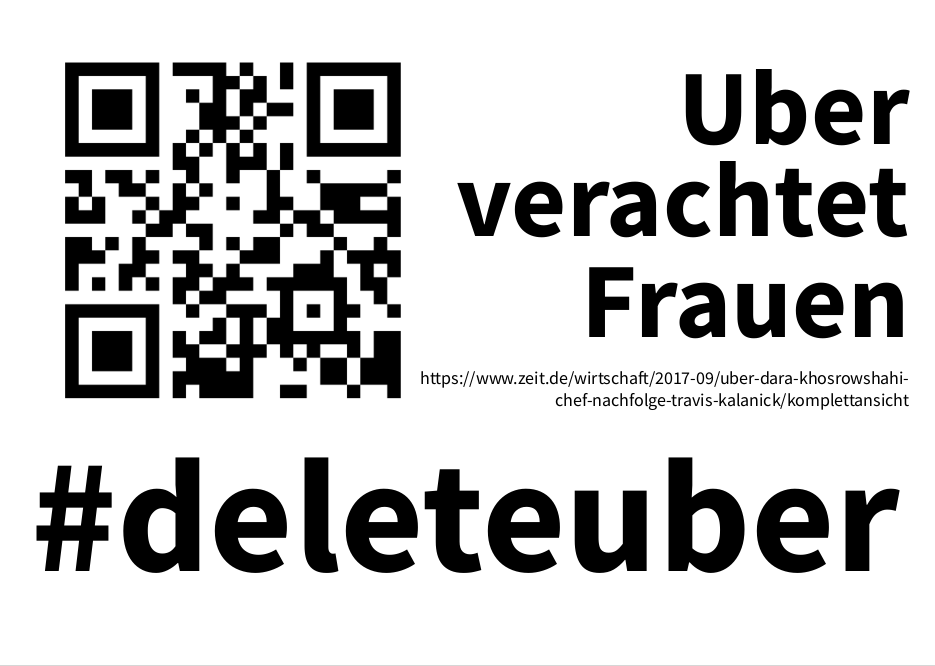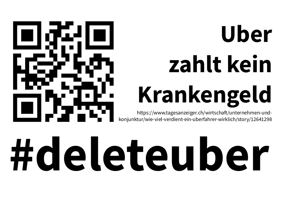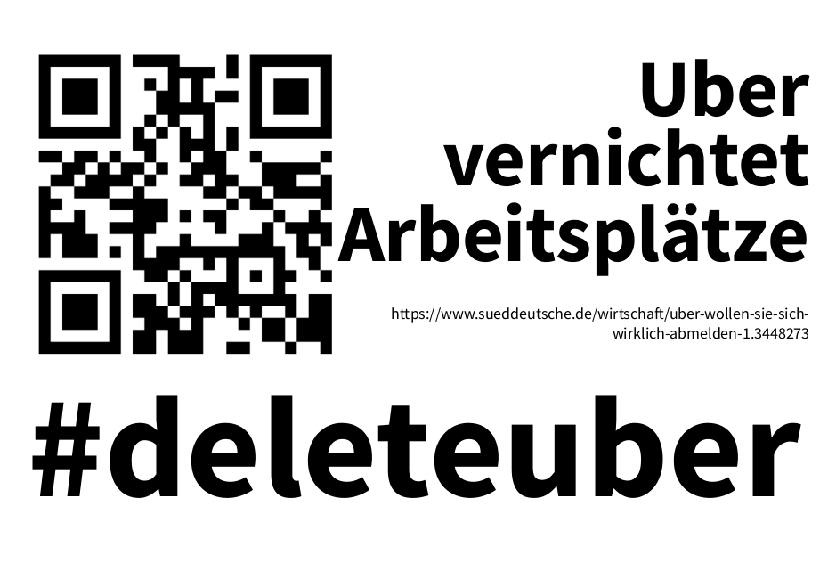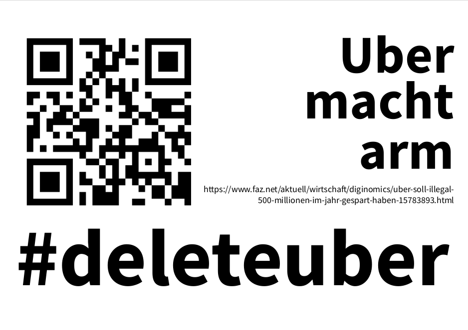 Wir haben die Schlagzeilen so gestaltet, dass man sie sich und ausdrucken kann. Einfach als Kommentar an die passende Uber-Werbung im Stadtbild heften. Mit den QR-Codes können sich alle sofort per Handy die echten Fakten holen.