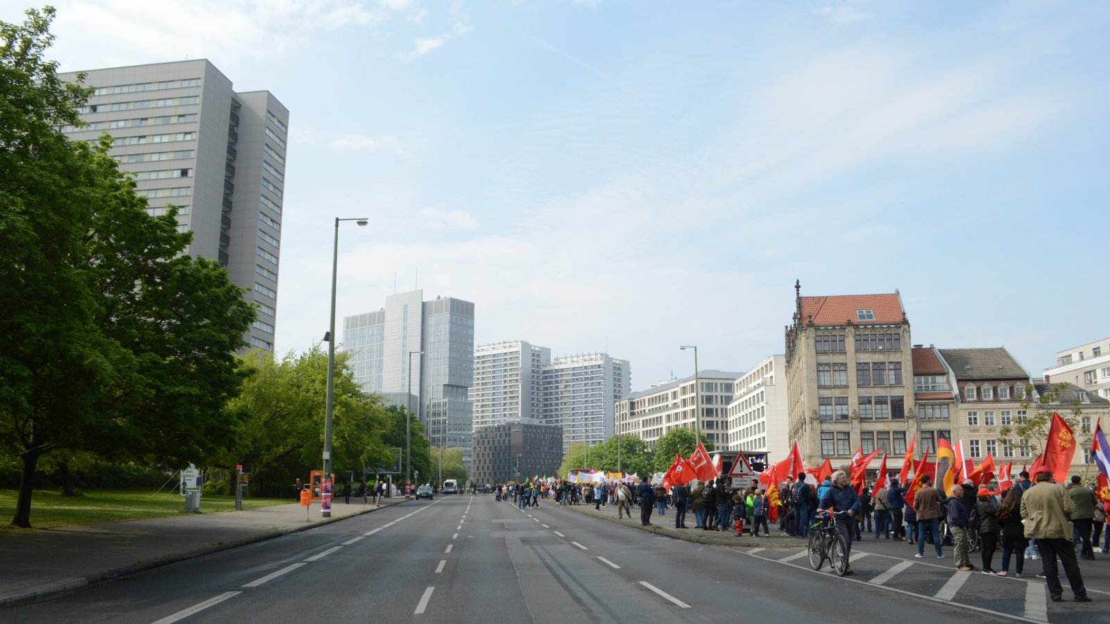 Berlin 1. Mai 2019 - DGB-Zug von Fischerinsel über Gertraudenstraße, Spittelmarkt bis weit in die Leipziger Straße.