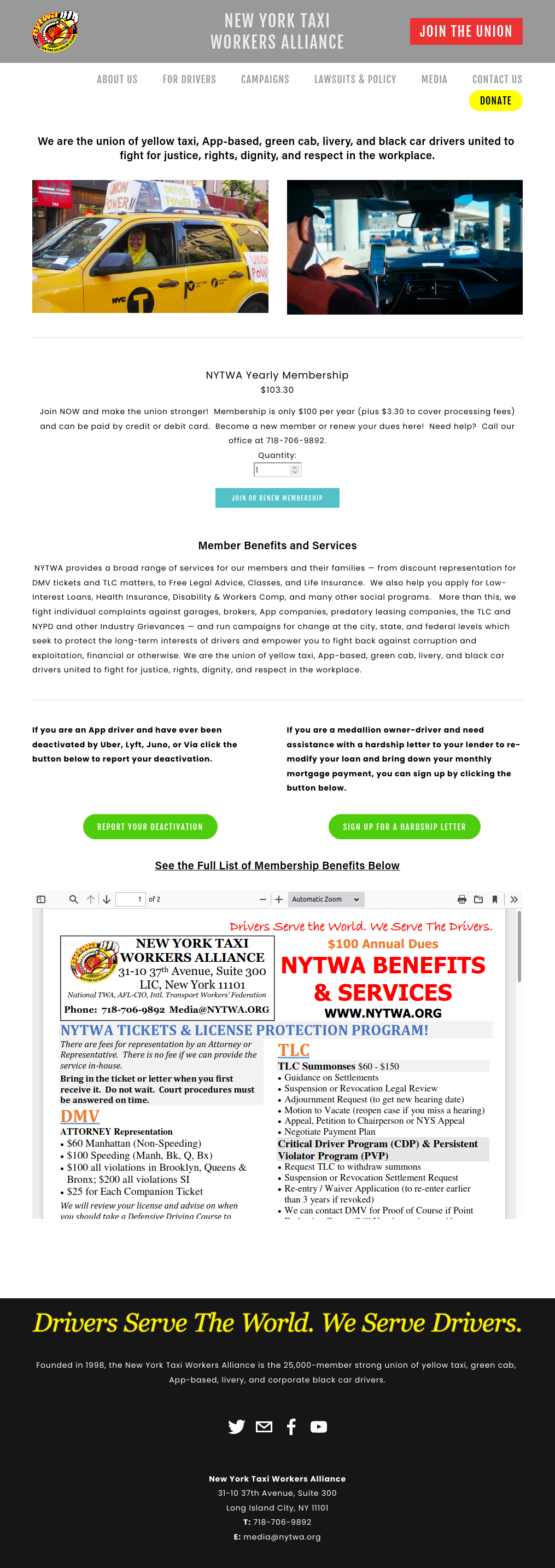 Das Logo des Artikels ist ein Screenshot aus dem Video der NYTWA und zeigt das Symbol der Gewerkschaft.