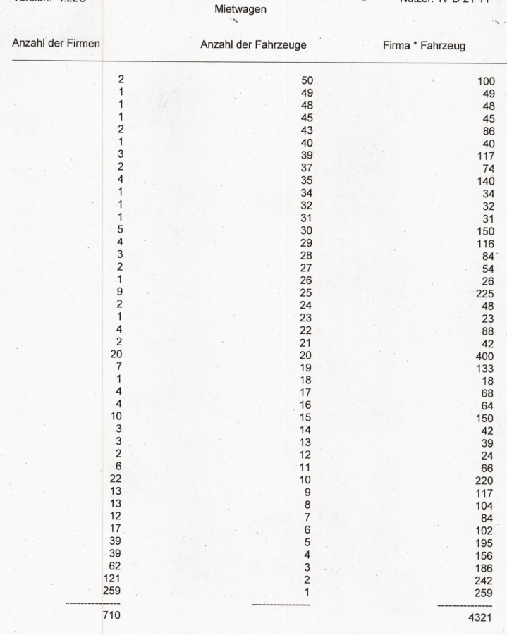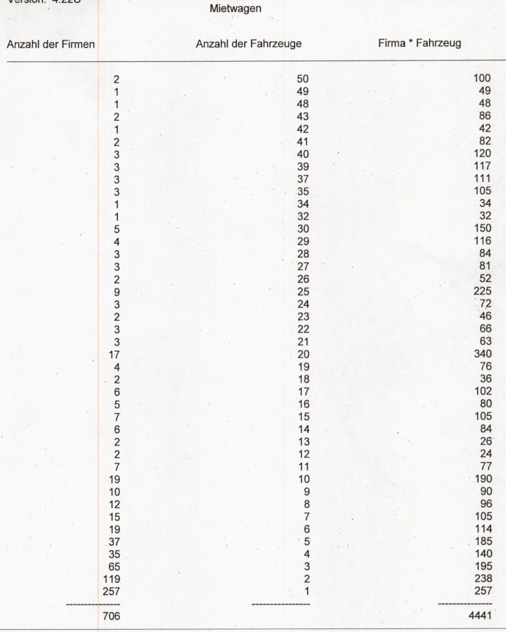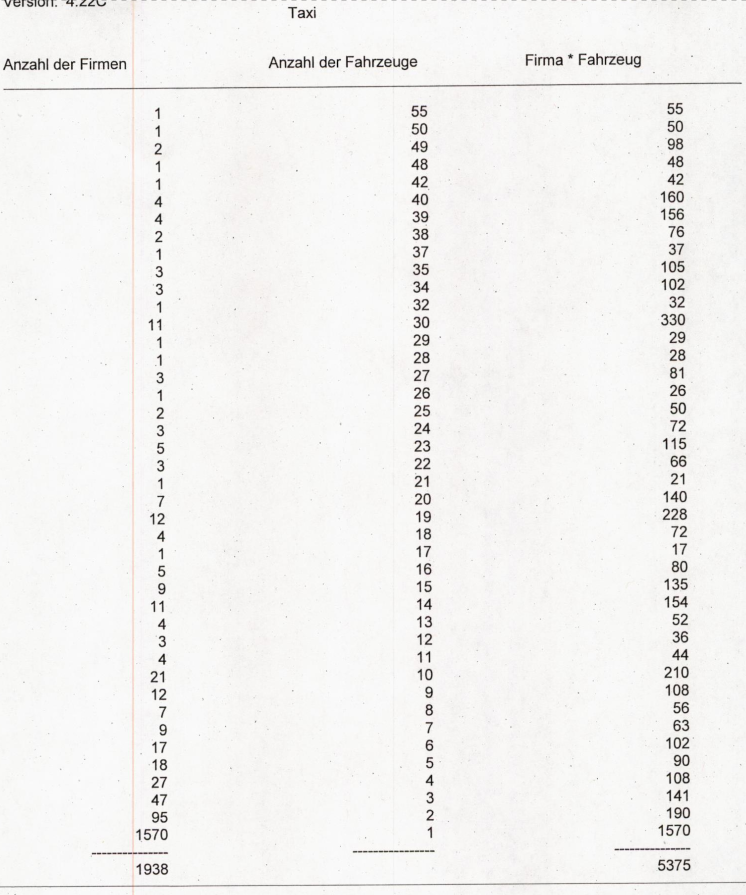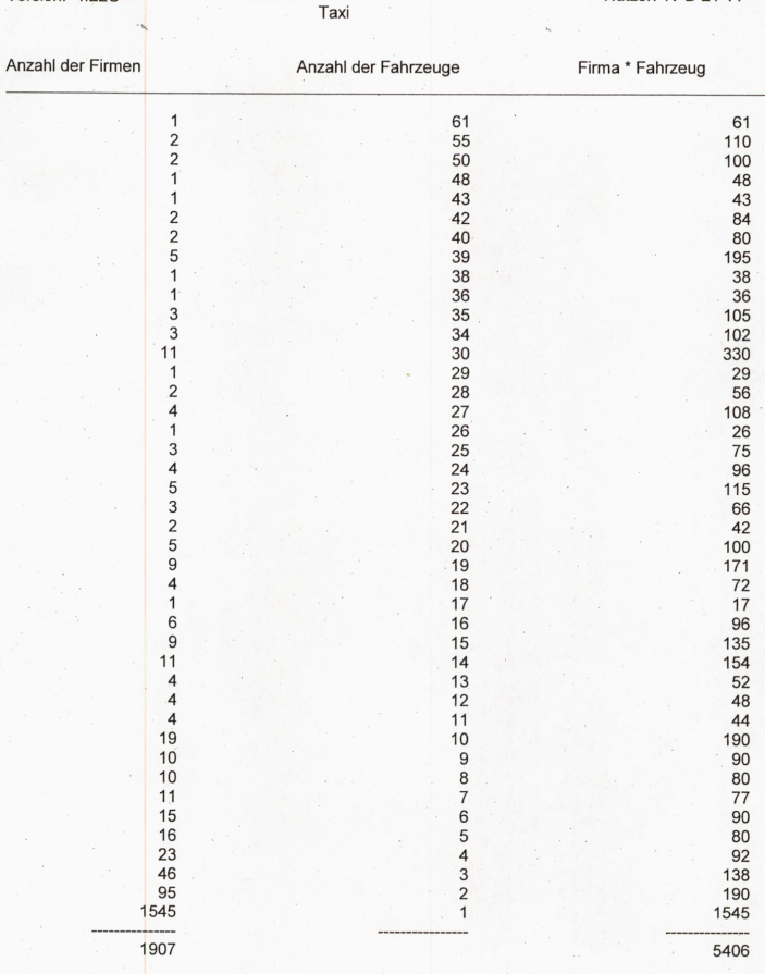 Auch nur auf den ersten Blick erstaunlich ist eine Zunahme der Zahl an Taxis um 31 Wagen von 5375 auf 5406.