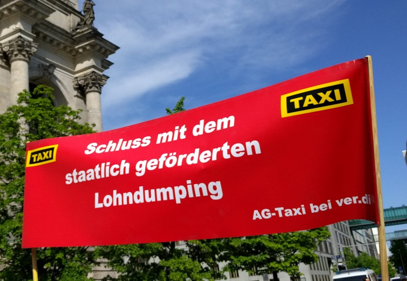 Transparent der AG Taxi vor dem Bundestag